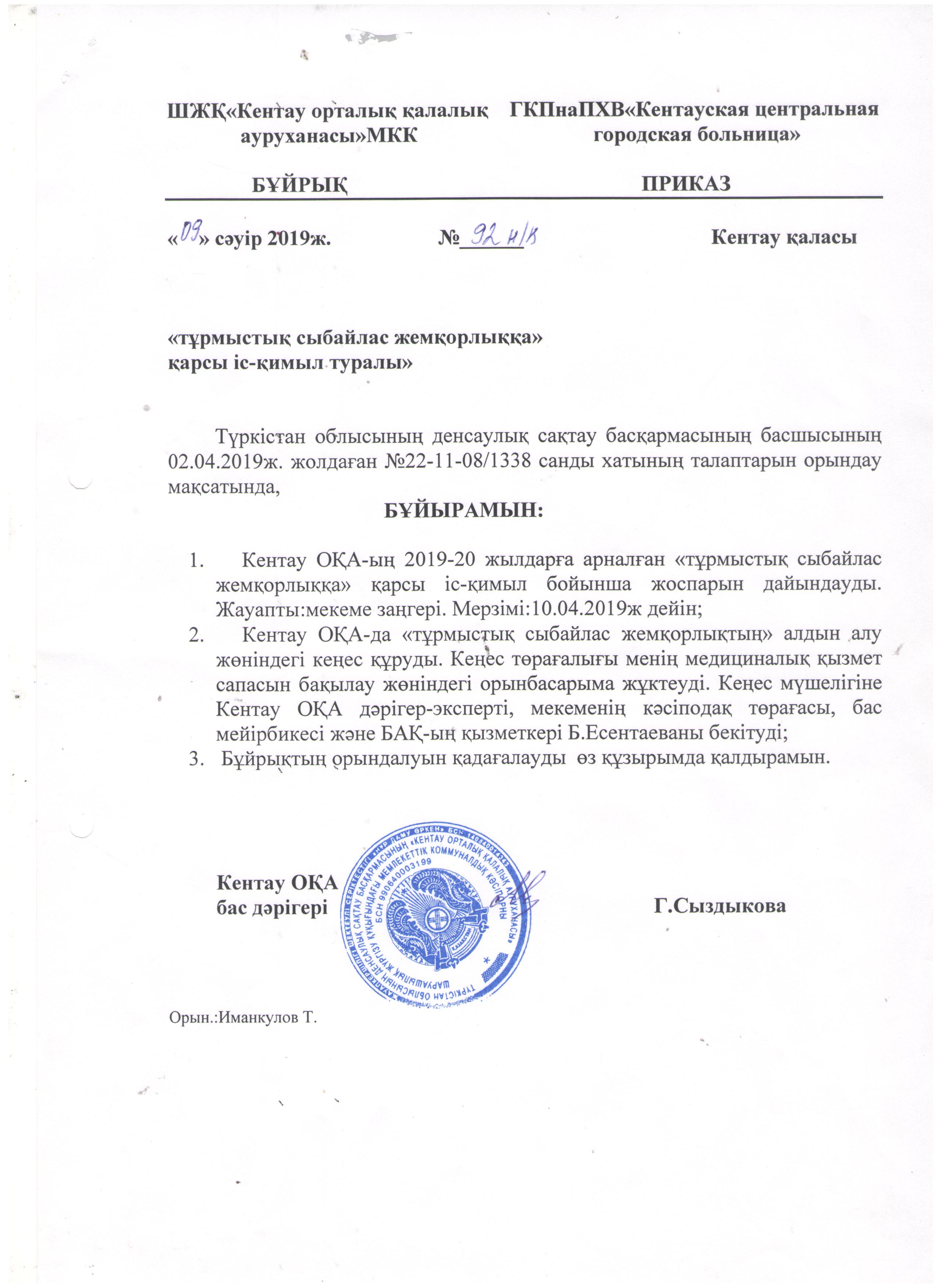 Түркістан облысы қоғамдық денсаулық басқармасының "Кентау орталық қалалық ауруханасы" ШЖҚ МКК