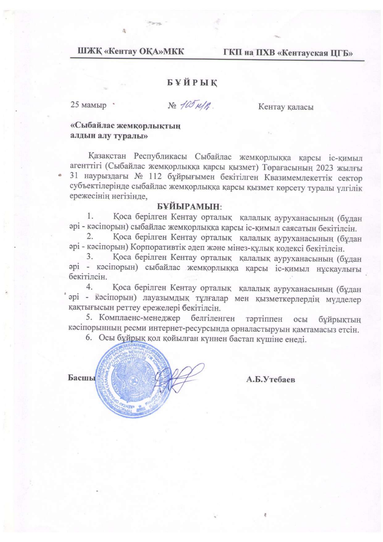 Түркістан облысы қоғамдық денсаулық басқармасының "Кентау орталық қалалық ауруханасы" ШЖҚ МКК