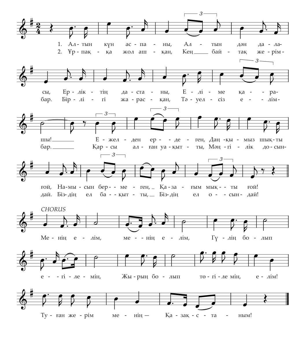 После обретения республикой государственного суверенитета в 1992 году был объявлен конкурс на музыку и текст гимна Казахстана. По итогам конкурса было принято решение сохранить музыкальную редакцию гимна Казахской ССР. Таким образом, авторами музыки первого казахстанского гимна стали Мукан Тулебаев, Евгений Брусиловский и Латиф Хамиди. В конкурсе на лучший текст также победил авторский коллектив, представленный известными поэтами: Музафаром Алимбаевым, Кадыром Мырзалиевым, Туманбаем Молдагалиевым и поэтессой Жадырой Дарибаевой.