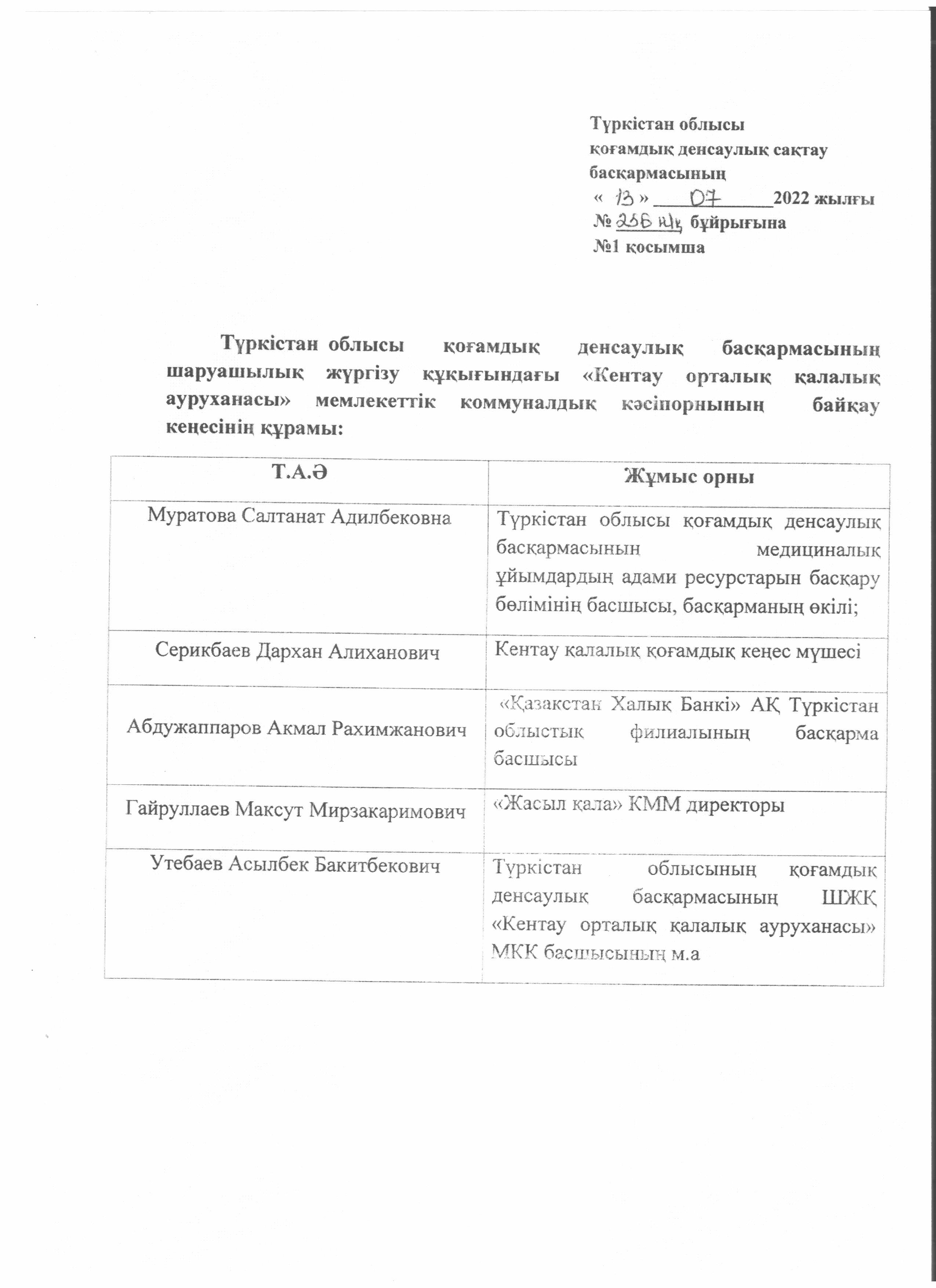 Секретарь наблюдательного совета ГКП на ПХВ «Кентауская ЦГБ» Иманкулов Талгат Султанбекович
